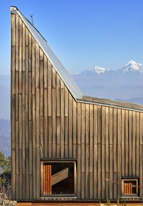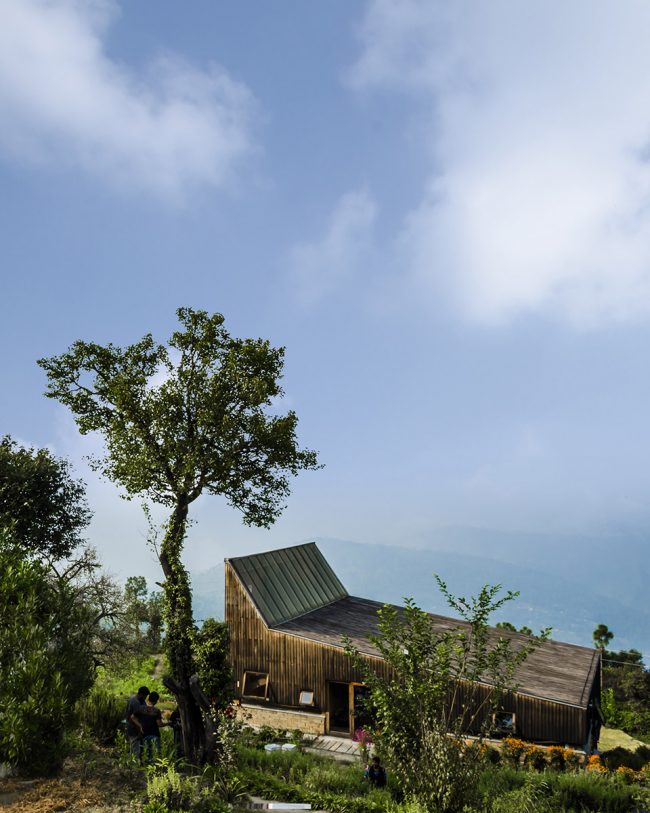 這座房子的設(shè)計(jì)考慮到了其周圍喜馬拉雅山脈白雪皚皚的自然景色,同時(shí)深深扎根于現(xiàn)有的未被破壞的梯田。這兩個(gè)壓倒性的景觀使得建筑被放置在梯田的最低級,與周圍的大環(huán)境相融合。