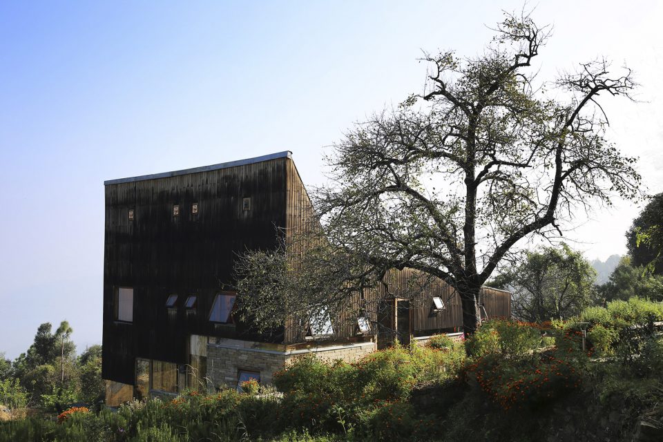 這所房子坐落在海拔2000米的Nanital地區(qū)的Satkol村,周圍只有傳統(tǒng)的鄉(xiāng)村房屋,反映出當(dāng)?shù)剞r(nóng)民的簡樸生活。它是為自用而建的度假屋。