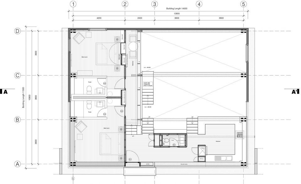 4個(gè)14.50 m跨度的sal木框架由多個(gè)膠合木板和薄鋼拉桿組成,支撐著整個(gè)用木材覆蓋的屋頂、隔熱的建筑外殼、整個(gè)木質(zhì)的夾層,并塑造了標(biāo)志性的雙層玻璃天窗。整個(gè)房子被懸掛在這些堅(jiān)固的桁架框架中,沒有任何中間柱的支撐,使得一種不受干擾的地形輪廓流進(jìn)入靜謐的松木鑲板的室內(nèi)空間。精心雕琢的方形窗戶,朝向各個(gè)方向,讓使用者得以禪觀各個(gè)山峰和不斷變化的云。