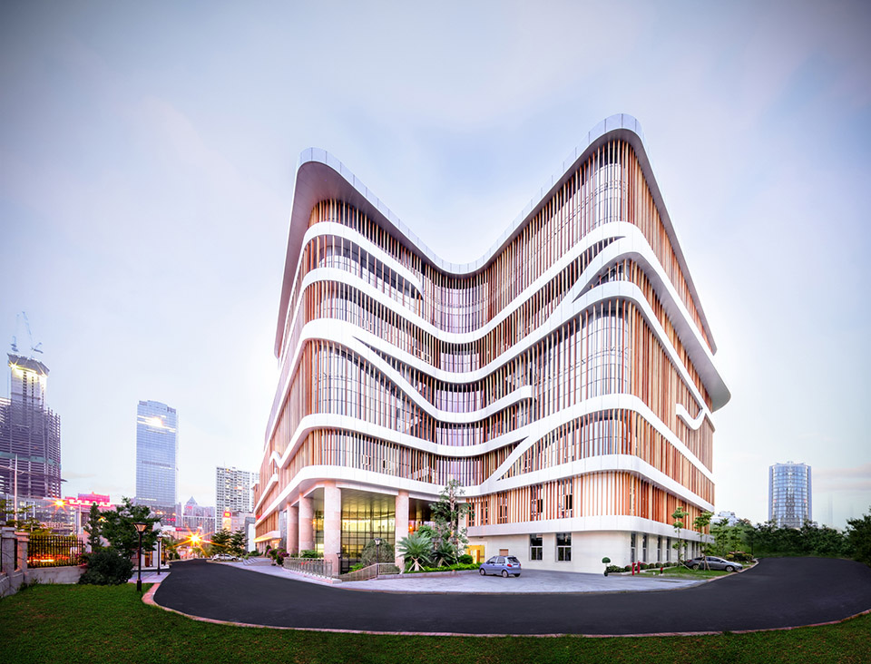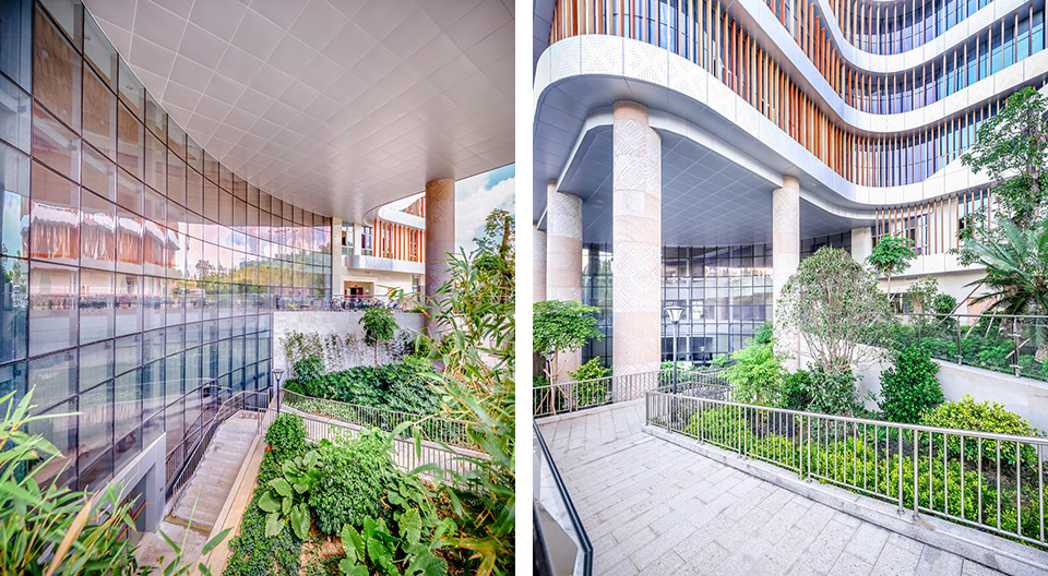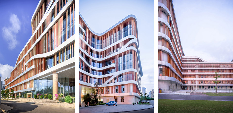 時境建筑的廣西老干部活動中心項目結合地貌的變化,嘗試將本地傳統的竹木結構建筑原型通過當代技術轉譯為現代空間,變化的遮陽板肌理暗合了本土手工印象,創(chuàng)造了豐富的室內與室外的空間體驗。