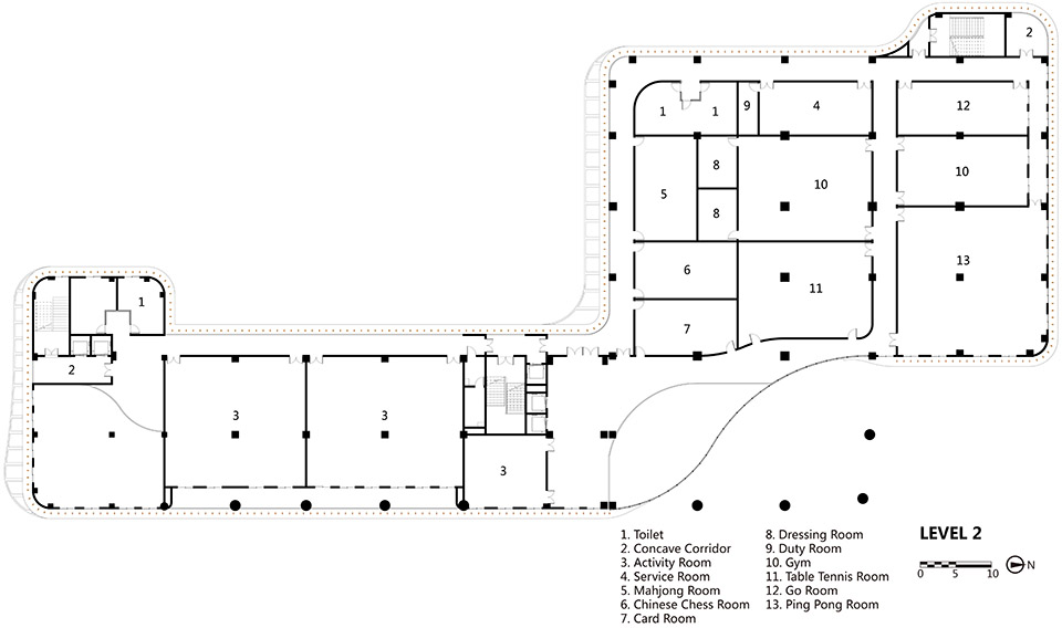 建筑的理念根源于對項目背后的人文內涵的思考:建筑師希望要創(chuàng)造一個適于退休人員的空間,而這些退休者的青年時期大多是在文革中度過的。盡管歷史對文革的評價是負面的,但文革時期形成的“集體式生活”多少還是為那個時代留下了些溫暖的記憶。退休者對于命運多舛的時代的歸屬感是建筑師對于現代生活的孤立與冷漠做出批評的立足點。