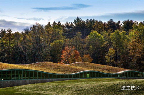 這個(gè)總面積達(dá)16500平方英尺的建筑屋頂由植被覆蓋而成,與周圍植物的顏色一致,有利于建筑物與自然風(fēng)光相互協(xié)調(diào)。從某些角度,建筑幾乎消失于人們的視野 之中。當(dāng)?shù)刎S富的可再生建筑材料在整個(gè)建筑框架、桁架、欄桿、單板和木材復(fù)合板中都得到了充分應(yīng)用。欄桿是在當(dāng)?shù)厥崭?、研磨、烘干后進(jìn)行再裝配的。