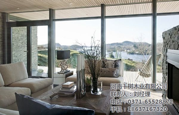 河南木別墅的尺寸和視野,是我們喜歡的一個焦點。特別對于度假木屋,在室內(nèi)平靜的與戶外自然景觀對話,是大窗戶的重要意義。大窗戶在木屋中,提供最佳漂亮的風(fēng)格,當(dāng)然對于木屋設(shè)計也是至關(guān)重要,如何漂亮美觀還要節(jié)能。如:窗戶與墻壁空間的比例、窗戶的形狀和尺寸及屋頂?shù)呐渲枚际窃O(shè)計的考慮因素,方向葉是很重要的,可能會建議包括深檐和傾斜的窗戶方向以便在減輕陽光。