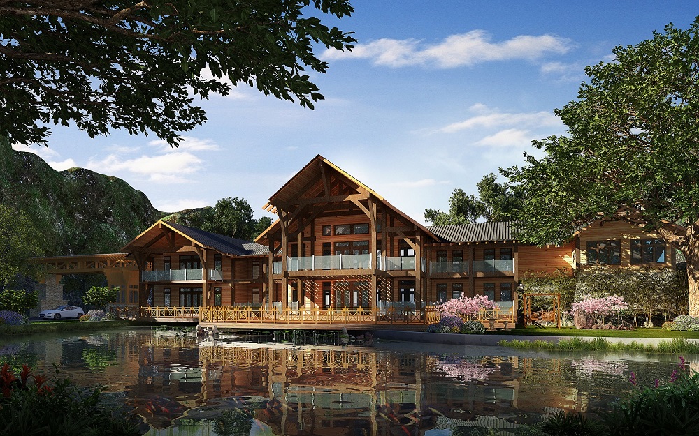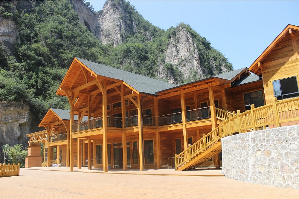 河南焦作龍翔山旅游度假區(qū)接待中心項目是目前河南省最大的單體花旗松膠合木項目,最大跨度達到10m以上,為河南木結構行業(yè)的發(fā)展起到了帶動作用。