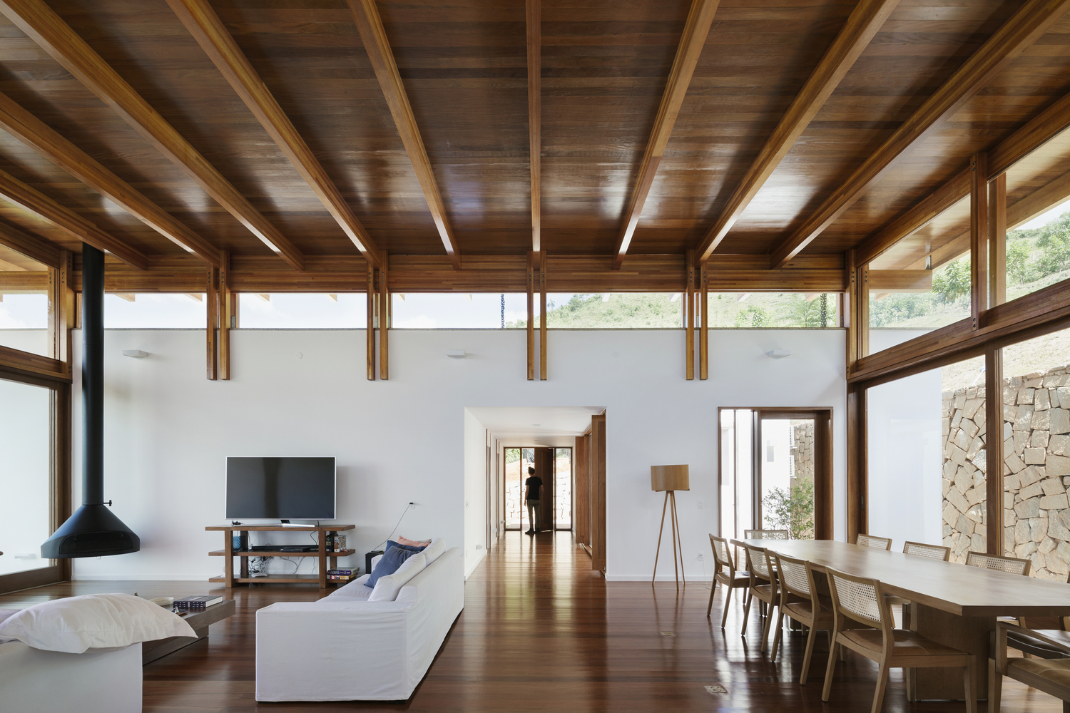 在中庭中,外部與內(nèi)部的聯(lián)系逐漸增強,結(jié)構(gòu)從其他房間生長出的遮蓋構(gòu)件亦如是。磚石平面中吸引人的木質(zhì)細(xì)部,除了能夠儲存建造過程的記憶,反應(yīng)混凝土柱的支撐桿以外,還可以將光線引入入口,以及增強對外部空間的感知。其中的空間,從最外部到最內(nèi)部,采用了方形的外觀。幾乎全部的外部空間,幾乎全部的內(nèi)部空間。光線,空氣,人群以及景觀互相互動。